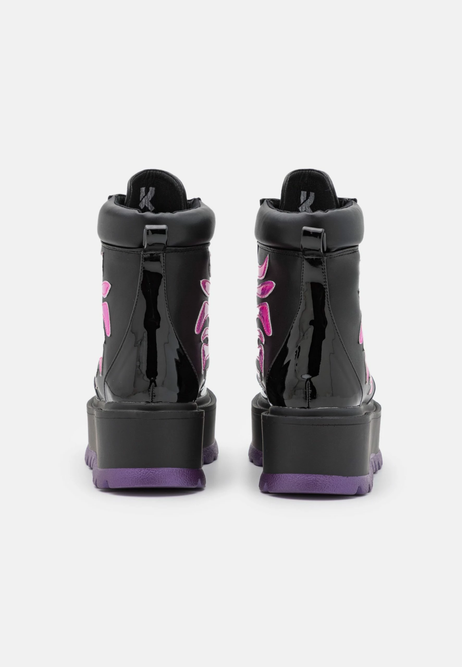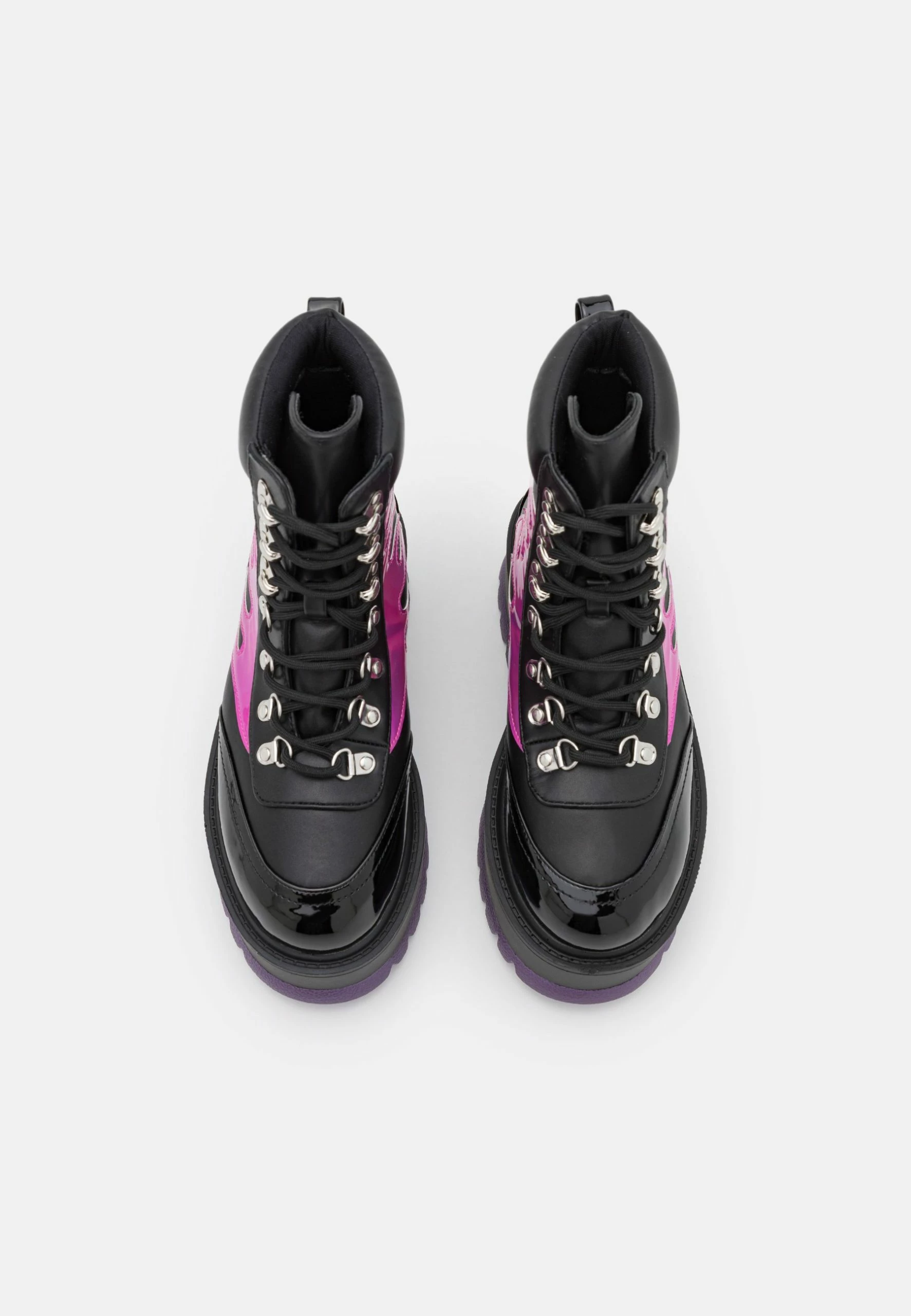 KOI FOOTWEAR Helios Hologram Flame Boots – Platform Ankle Boots – Purple