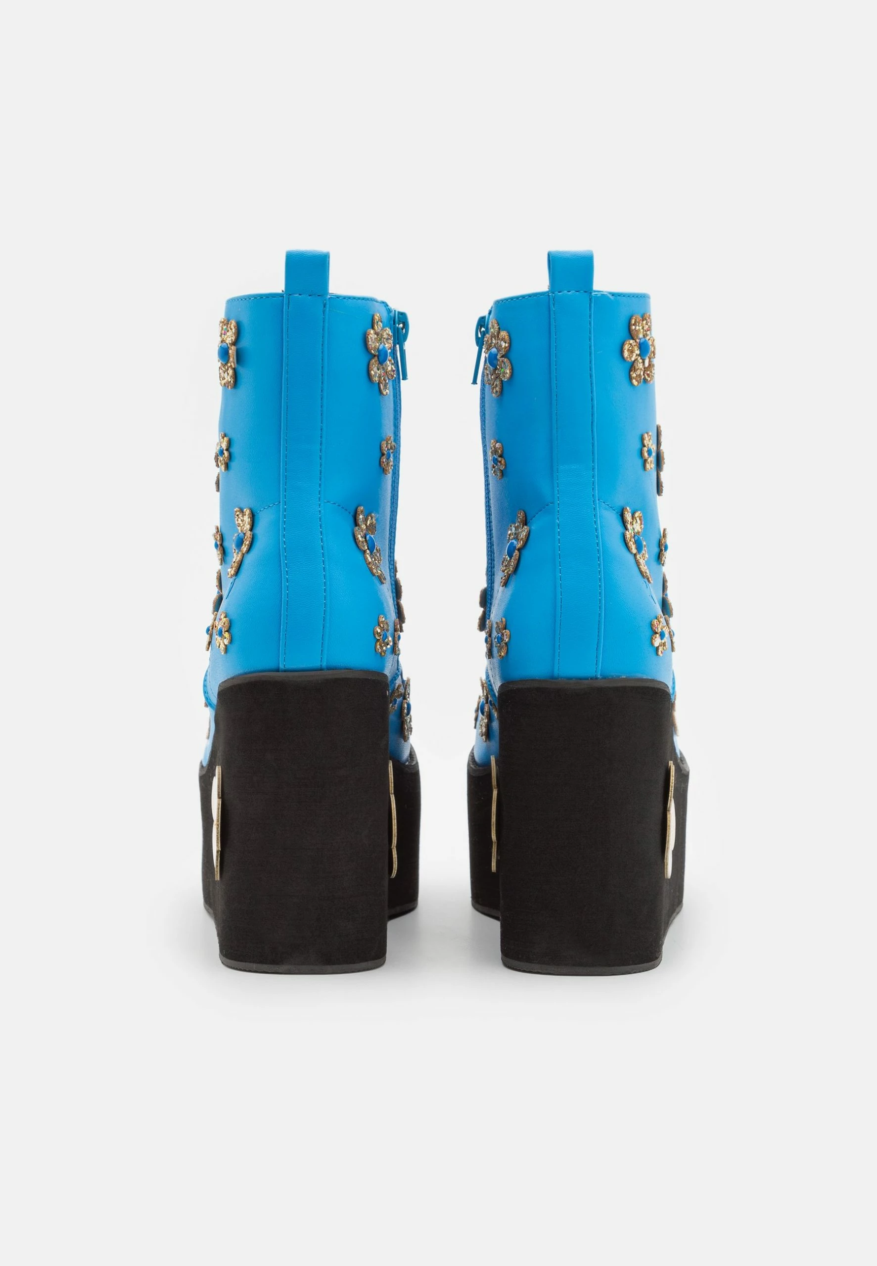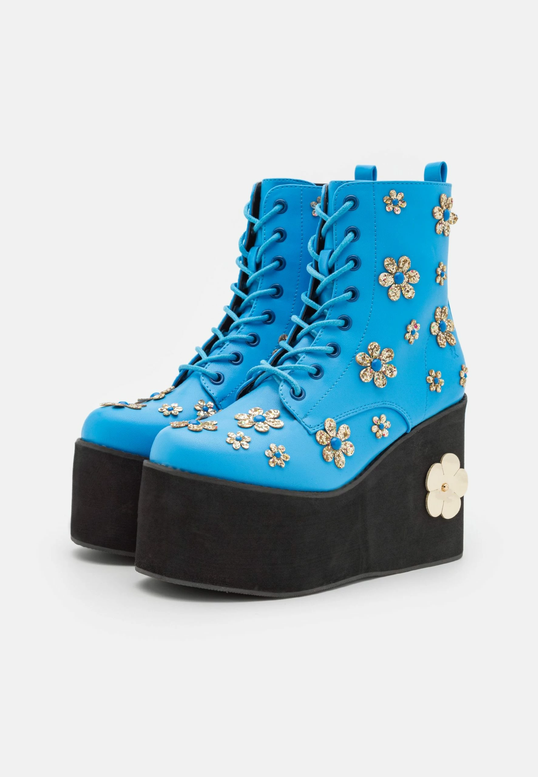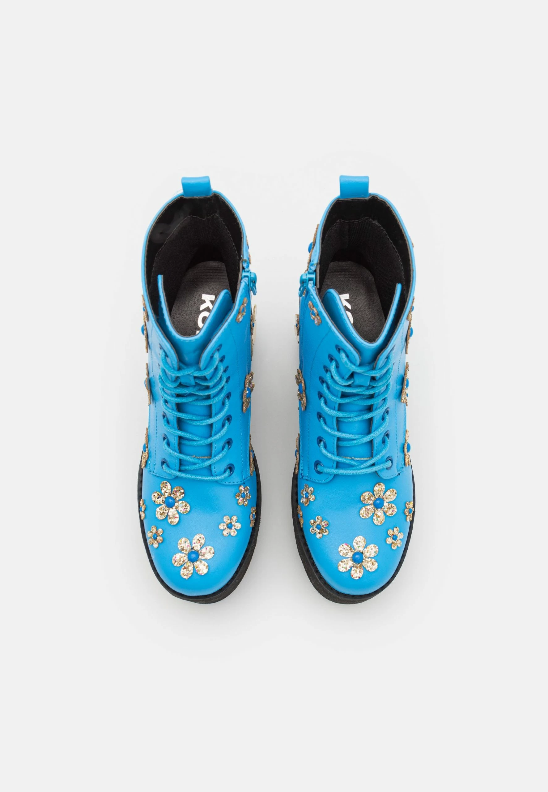 KOI FOOTWEAR Lotus Junkie Flower Flatorm Boots – Lace-Up Ankle Boots – Blue