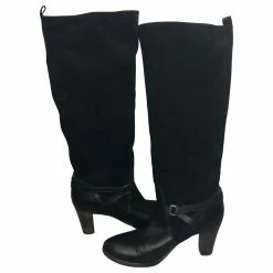 Christian Dior Dior Black Leather And Suede Knee Height Boots High Heels Shoes Size 38