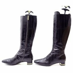 DOLCE & GABBANA SHOES BOOTS 38.5 BLACK PATENT LEATHER BOOTS