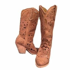 Jean Paul Gaultier Lace Leather Cowboy Boots Beige Caramel