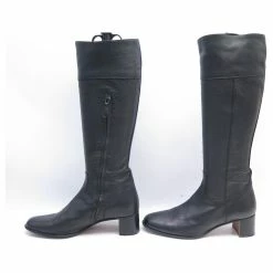Hermès HERMES SHOES RIDER BOOTS 38.5 BLACK LEATHER RIDING BOOTS