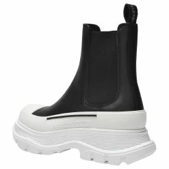 Alexander Mcqueen Tread Slick Boots In Black Leather, White Sole And Silver Detail