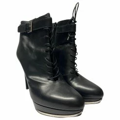 Alexander McQueen Curved Heel Platform Ankle Boots In Black Leather