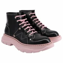 Alexander Mcqueen Tread Lace Up Boots In Pink/Black Calfskin Leather