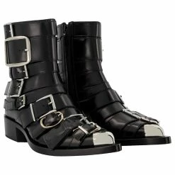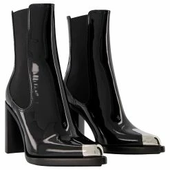Alexander Mcqueen Boxcar Boots In Black/Silver Leather