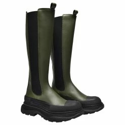 Alexander Mcqueen Upper And Ru Boots In Khaki Leather Green