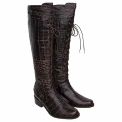 Janet & Janet – Boots With Heel And Metal Chain In Taupe Brown Leather, Rock Spirit