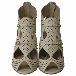 Nicholas Kirkwood Studded Cutout Ankle Boots In Cream Leather White