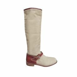 Studio Pollini Canvas And Leather Boots In Mint Condition Beige