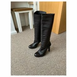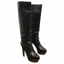 Sergio Rossi Heeled Knee High Leather Boots Dark Brown