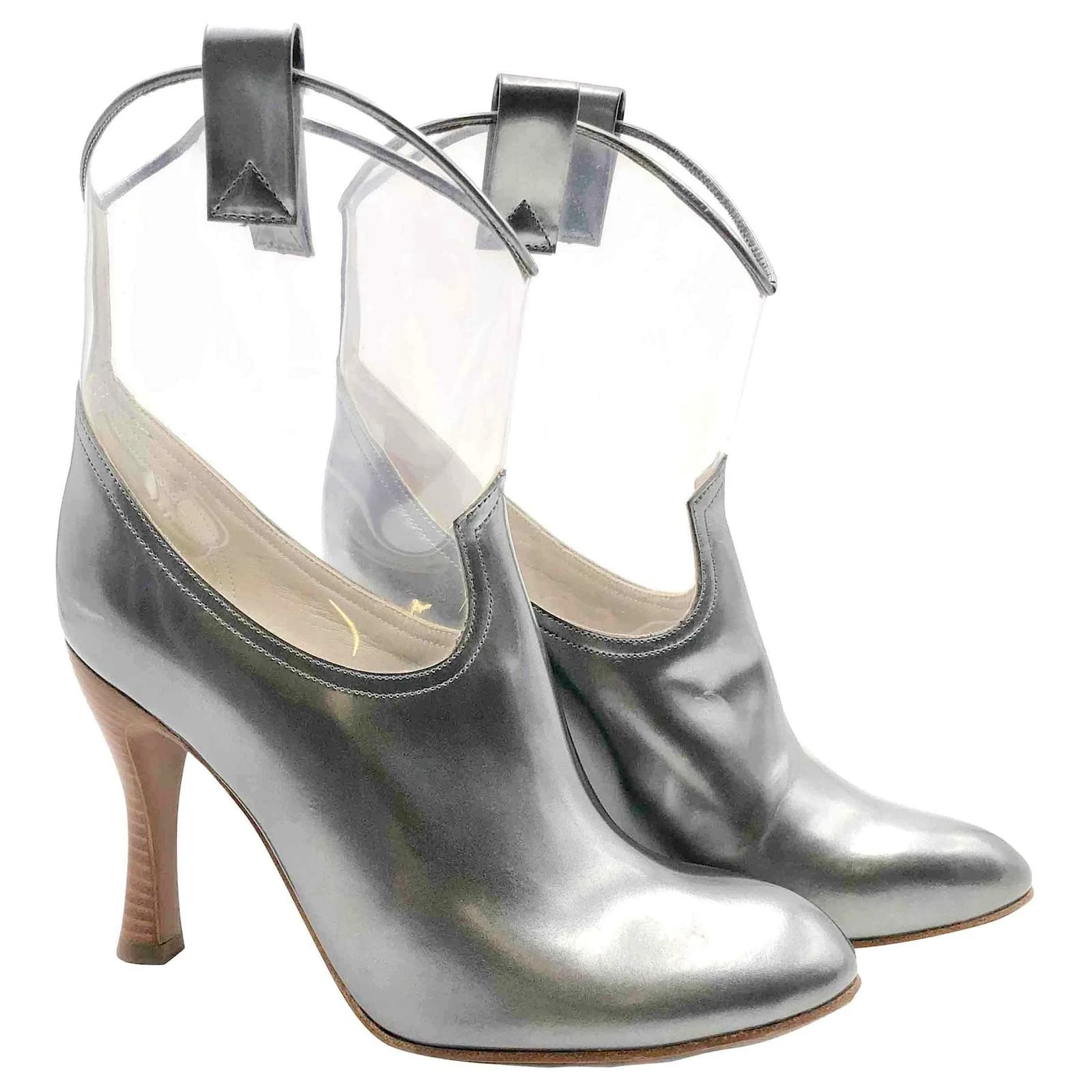 2012 season. Galaxy futuristic shoes from the runway collection.Boots in silver, with perspex, transparent panels over the ankles. Heel height: 9cm.