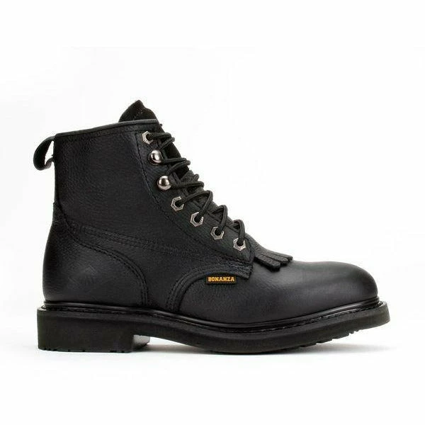 The Bonanza 6″ Plain Toe work boot crafted with premium workmanship delivers exceptional comfort with features such as removable memory insoles and unlined uppers to promote cool comfort throughout the work day. The removable kiltie provides additional protection in high friction areas. Fine tumbled full grain leather and attractive design make this essential plain toe boot a must for all day activities.