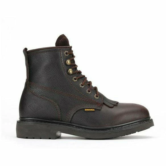 The Bonanza 6″ Plain Toe work boot crafted with premium workmanship delivers exceptional comfort with features such as removable memory insoles and unlined uppers to promote cool comfort throughout the work day. The removable kiltie provides additional protection in high friction areas. Fine tumbled full grain leather and attractive design make this essential plain toe boot a must for all day activities.