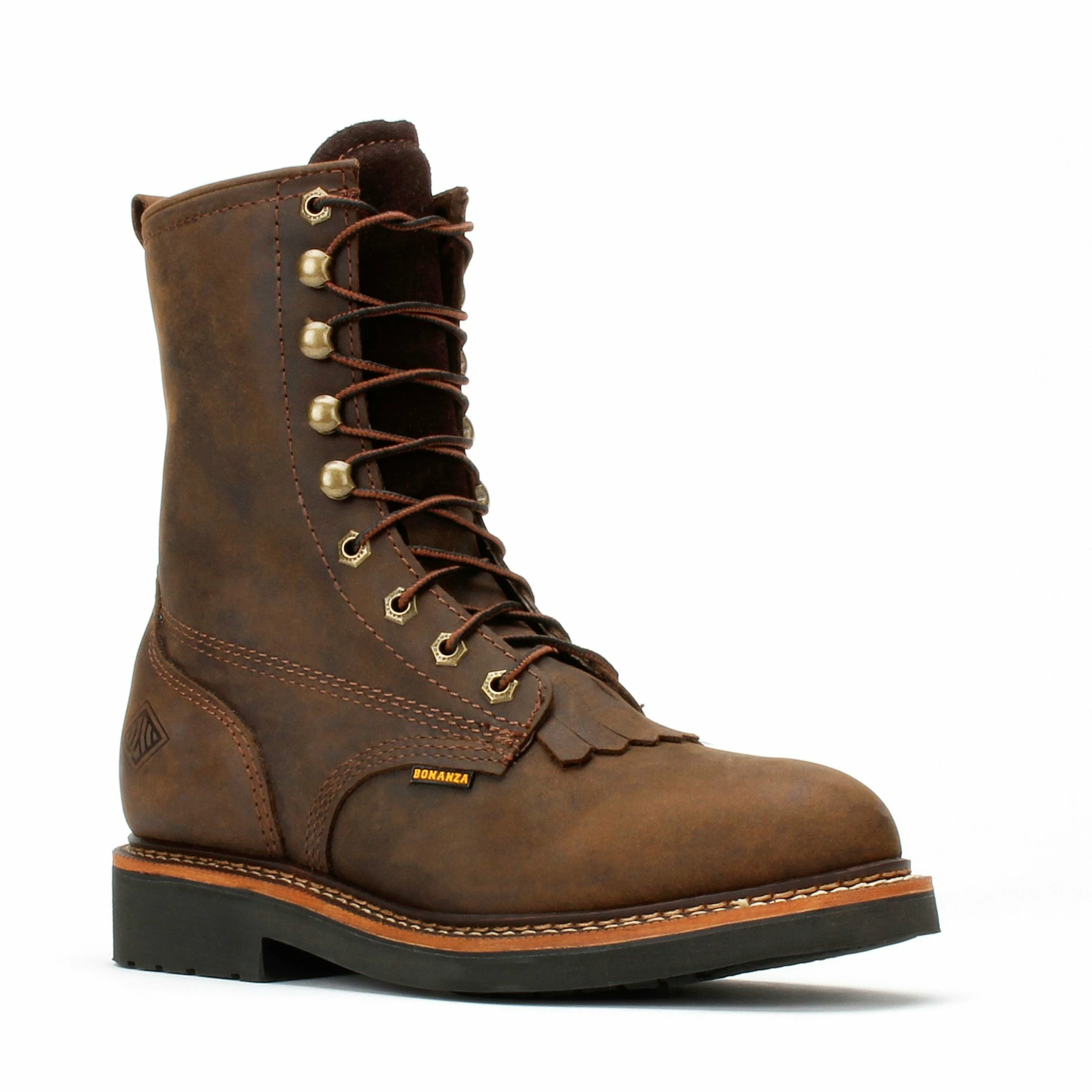 The Bonanza 8″ Lacer work boot crafted with premium workmanship delivers exceptional comfort with features such as removable memory insoles and unlined uppers to promote cool comfort throughout the work day. The removable kiltie provides additional protection in high friction areas. Fine full grain leather and an attractive design make this essential Plain Toe boot a must for all day activities.
