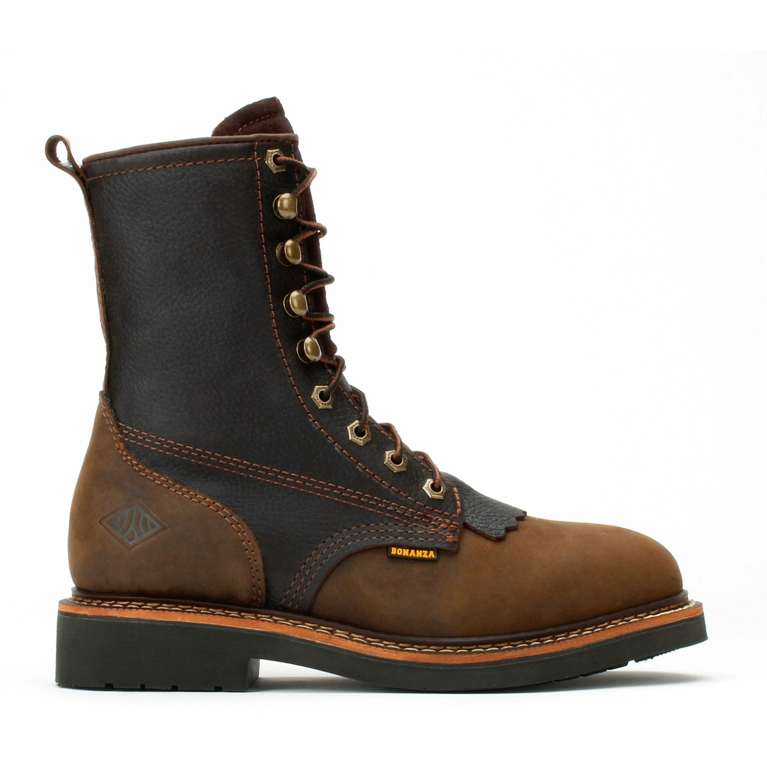 The Bonanza 8″ Lacer work boot crafted with premium workmanship delivers exceptional comfort with features such as removable memory insoles and unlined uppers to promote cool comfort throughout the work day. The removable kiltie provides additional protection in high friction areas. Fine full grain leather and an attractive design make this essential Plain Toe boot a must for all day activities.
