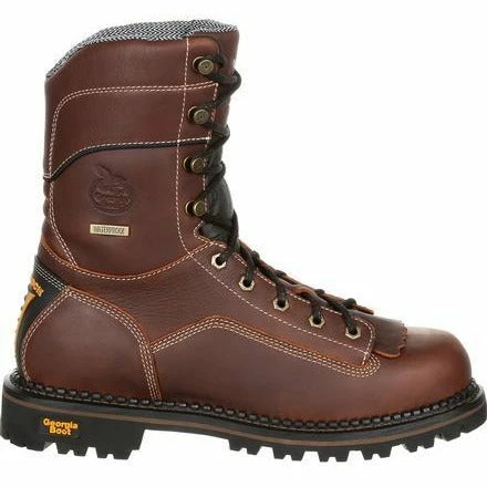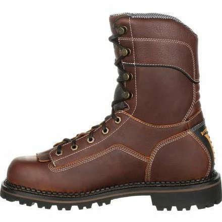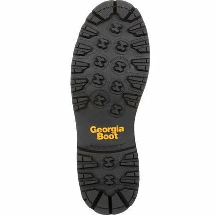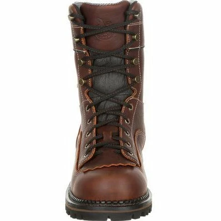 Inside this low heel logger you will find the AMP LT insole. This removable footbed is a layer of cushioning polyurethane topped with a layer of memory foam. It molds to the shape of your foot as you move and cradles your foot in comfort. Air channels on the bottom of the insole promote air circulation to help keep your feet cool. Additionally inside is the Georgia Waterproof System. This waterproofing is backed with a guarantee to keep your feet dry when wearing in wet conditions.