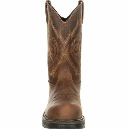 This square toed western work boot has and Ergo-Fit alloy toe cap. It’s lighter than traditional steel toe caps and design to give you a better range of motion while keeping your toes protected. The boot meets ASTM 2413 standards for protective toe and electrical hazard requirements.