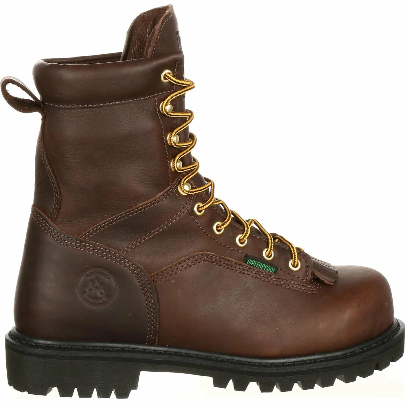 These boots have a steel toe that meets ASTM standards for impact and compression. They also meet standards for electrical hazard resistance. You get guaranteed waterproof protection with the Georgia Waterproof System.