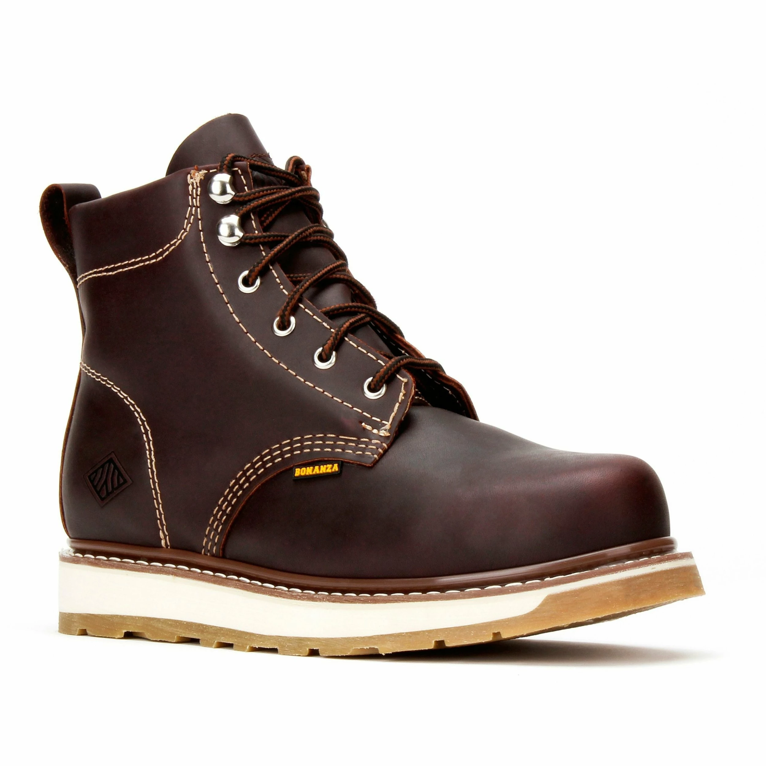 The Bonanza 6″Â Industrial Round Toe work boot constructed for extreme work environments,delivers all day comfort and protection. Premium full grain leather and Removable memory insoles promote foot breathability, roomy foot box allows for walking comfort and ease, and traction outsoles guarantees a buffer for severe rugged terrain. The Industrial Round Toe work boot is appropriate for everyday wear.