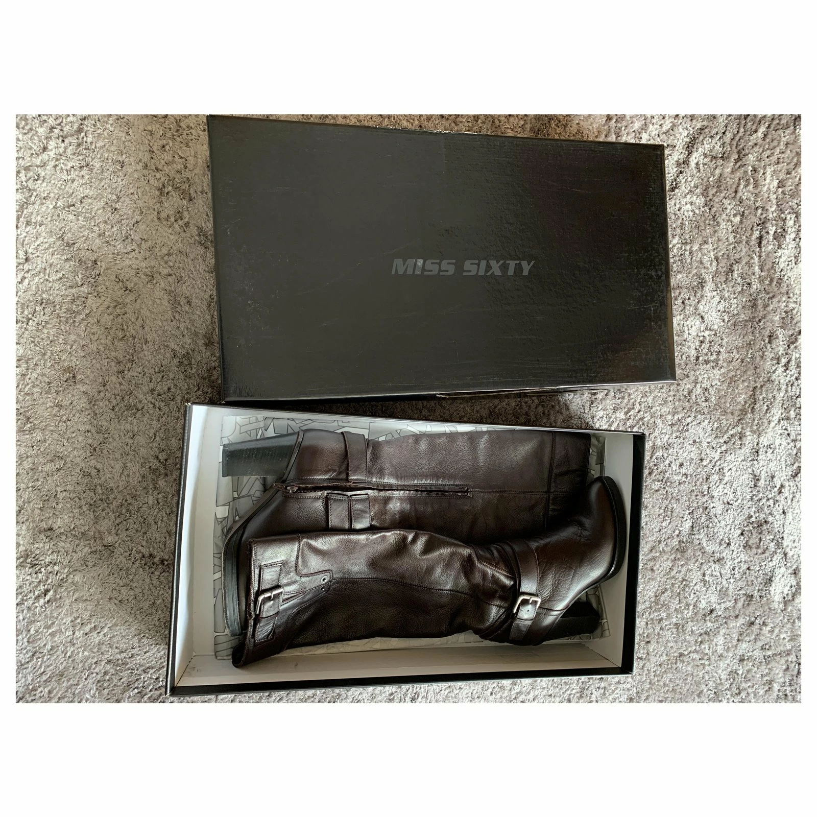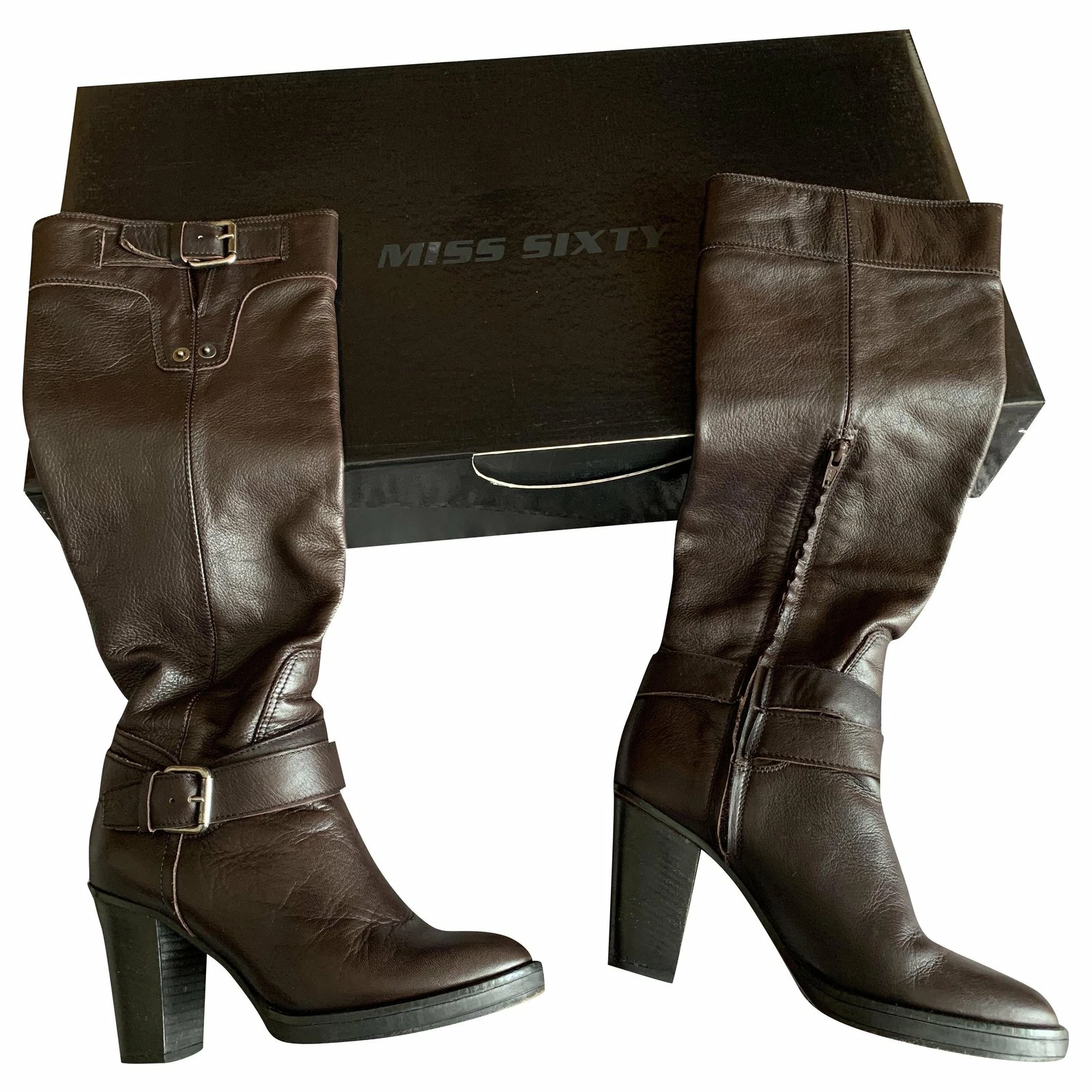 Miss Sixty boots in brown leather, HIGH, in excellent condition.