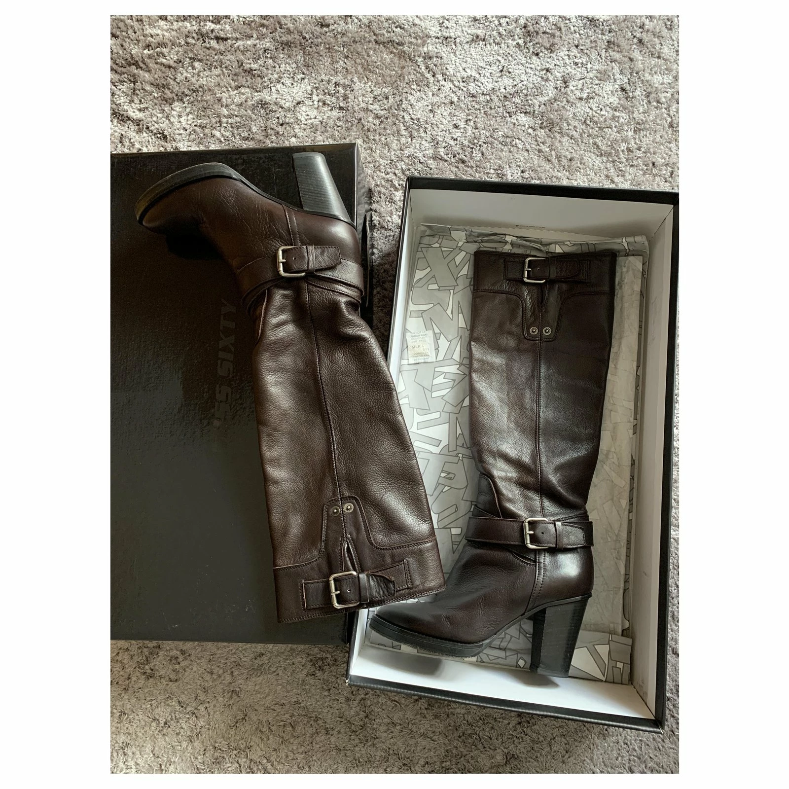 Miss Sixty Boots In Brown Leather, HIGH, In Excellent Condition Dark Brown