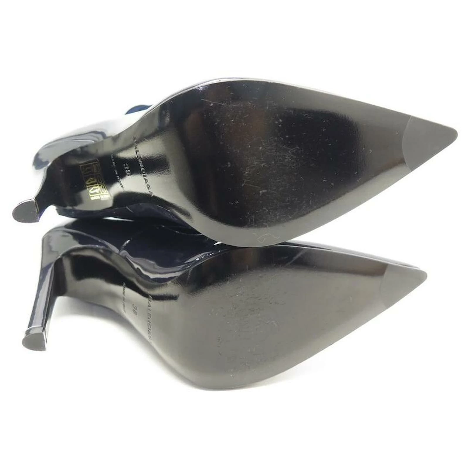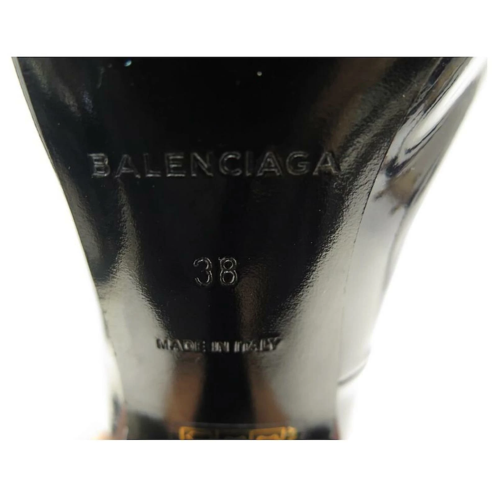 Branded ankle boots : BalenciagaMODEL : KNIFEShoe type : HeeledSex : WomanValue of new : 995 eurosList of documents and accessories provided : PouchCHARACTERISTICS :Matière : Bi-material (canvas & leather)Couleur : Navy blueNote : leather and velvet Value of new based on the price of the closest current models Size : 38heel height (in cm) : 11.5Dimensions : Length of the outsole (cm): 32.5Max sole width (cm): 7.5Opening tour (cm): 26Total height of the boot heel included (cm): 34