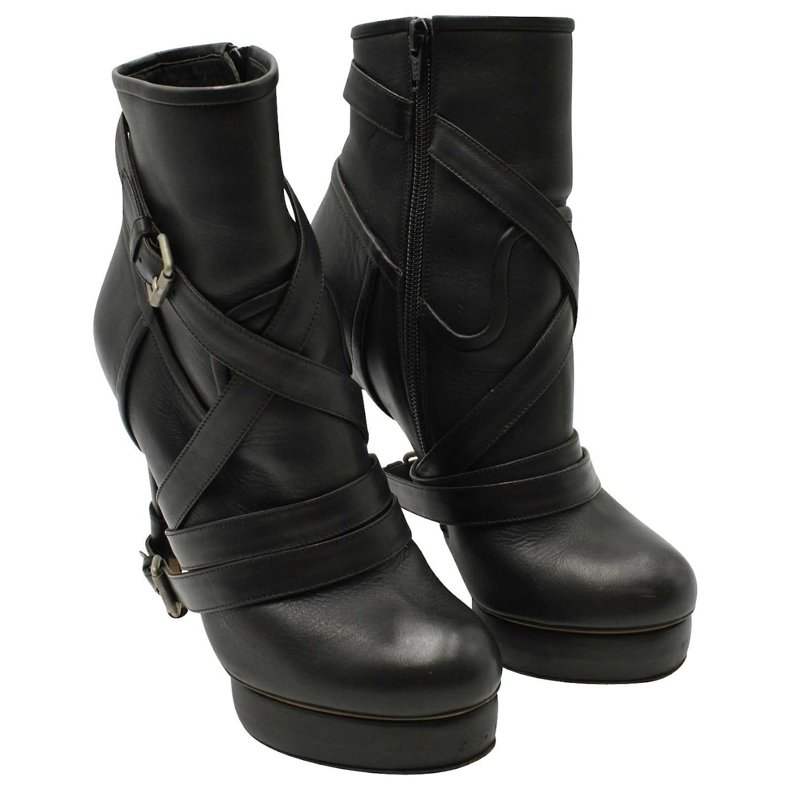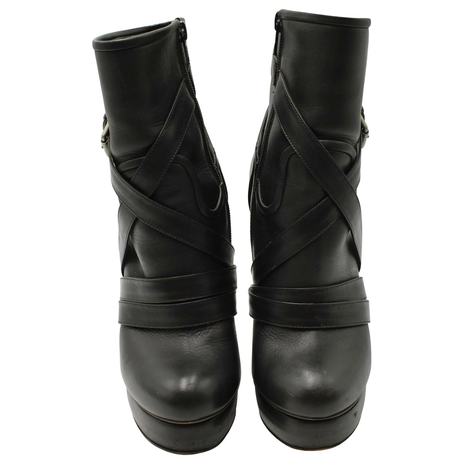 Nicholas Kirkwood Platform Ankle Boots with Straps in Black Leather