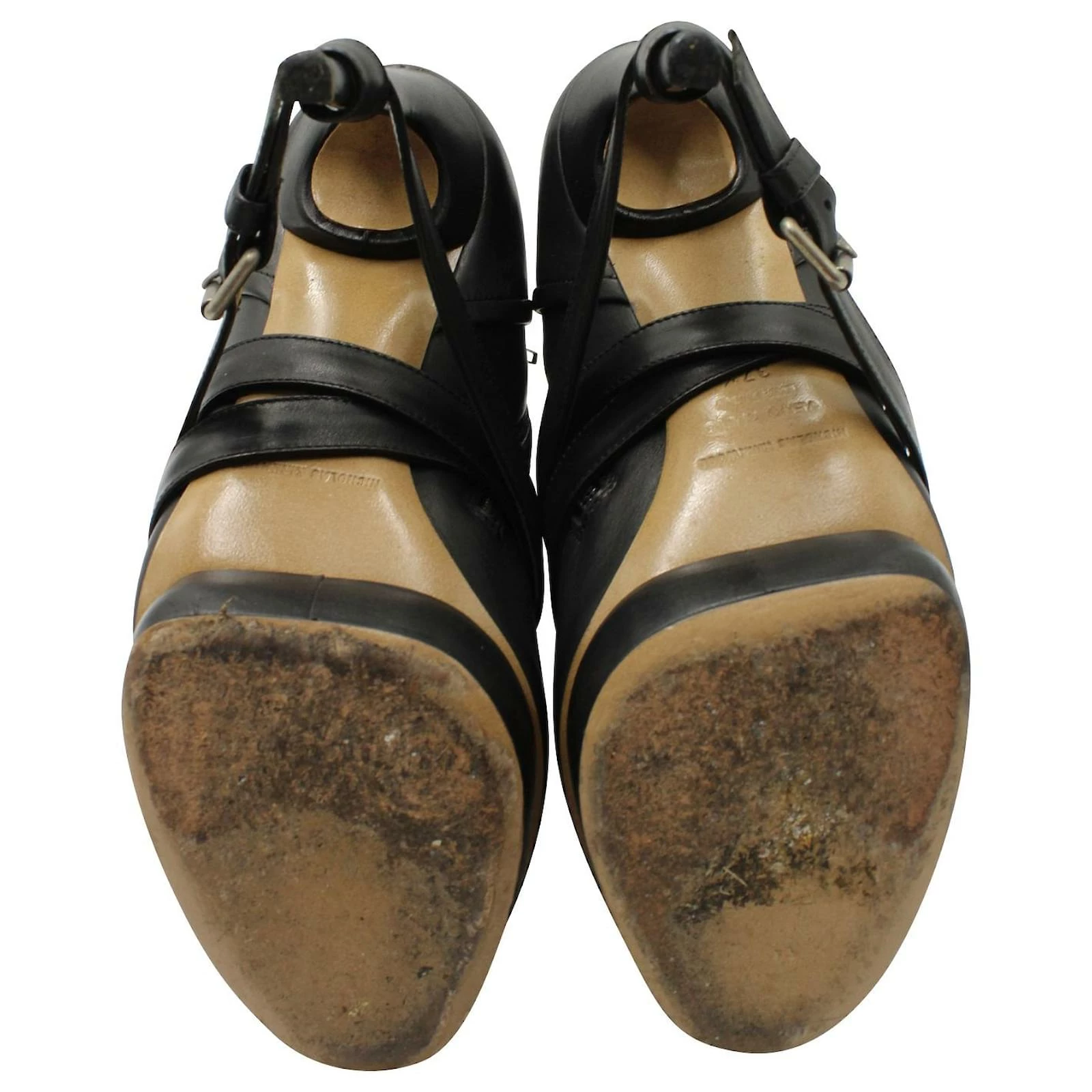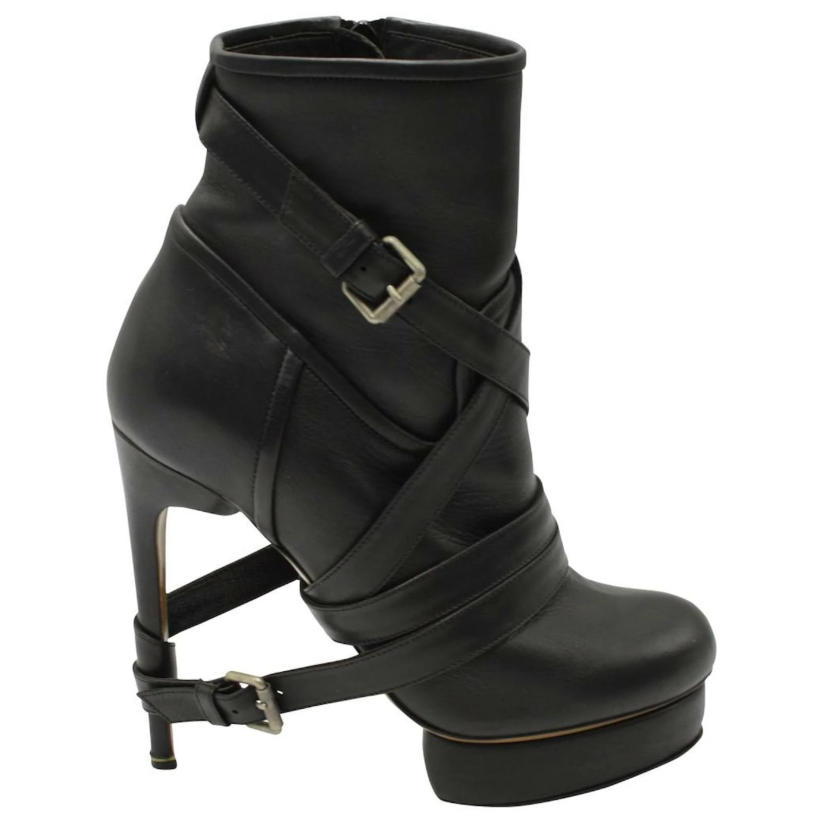 Nicholas Kirkwood’s black leather ankle boots with wrap around straps will take your look from day to night. The platform and ankle straps are a chic combination of feminine details, while the patent finish adds a sophisticated finish to this contemporary style.