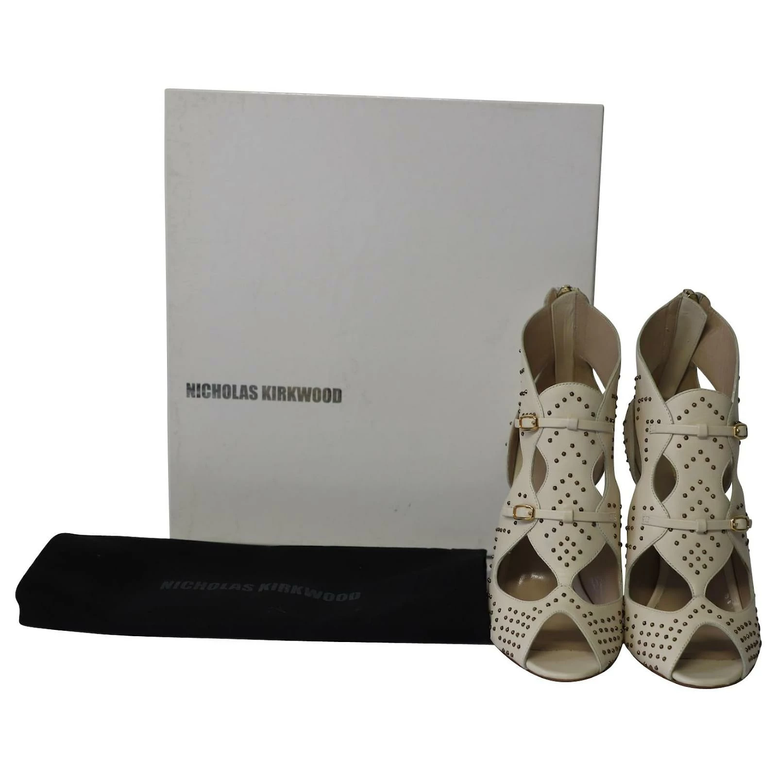 Nicholas Kirkwood Studded Cutout Ankle Boots in Cream Leather
