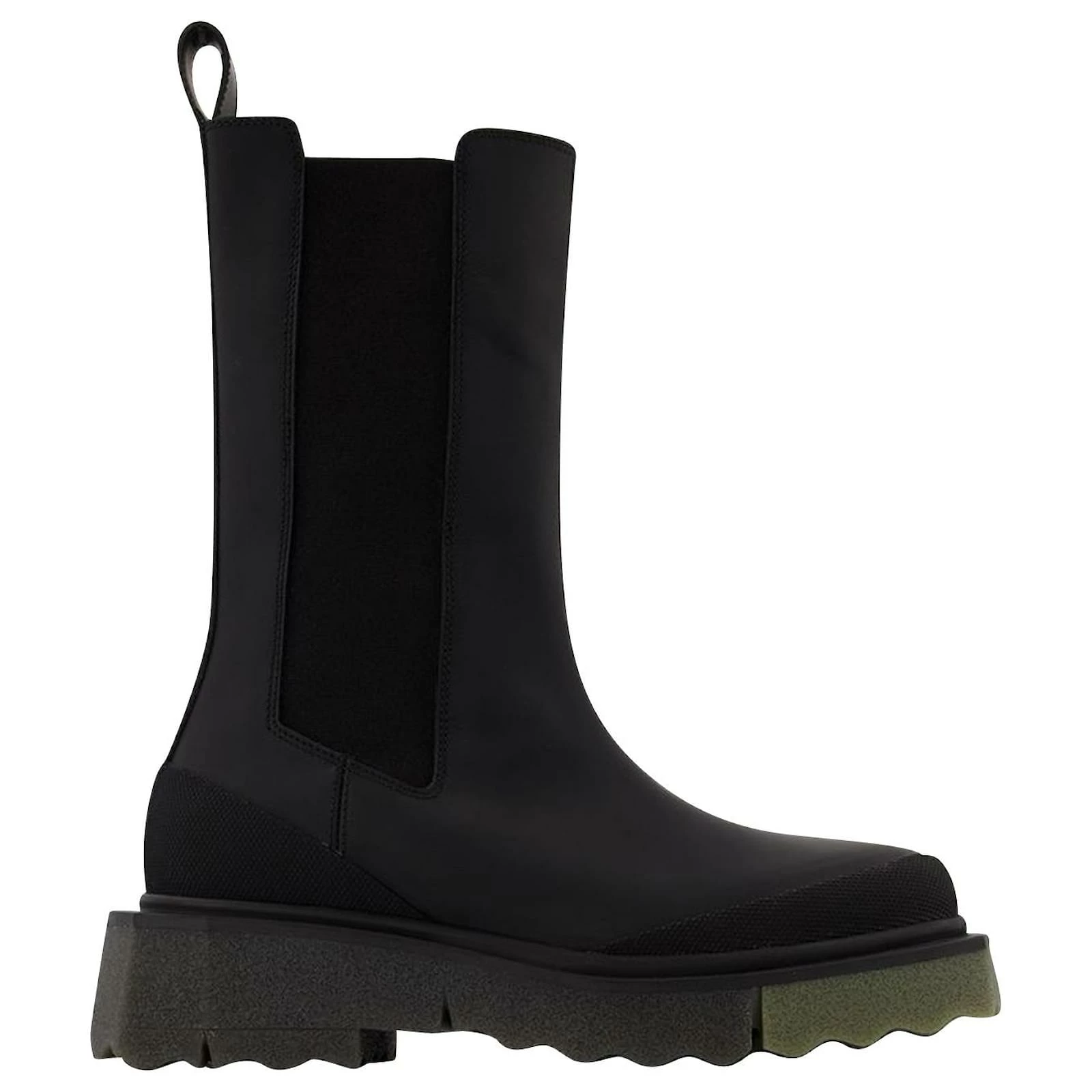 Off-White Off White Sponge Sole High Chelsea Boots In Black/Green Leather Khaki