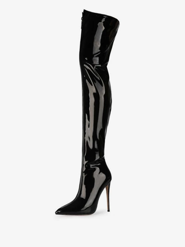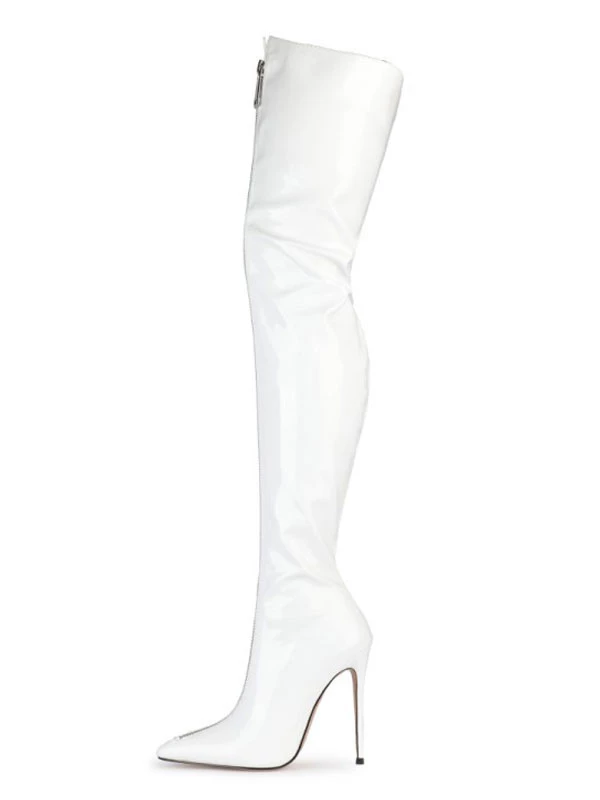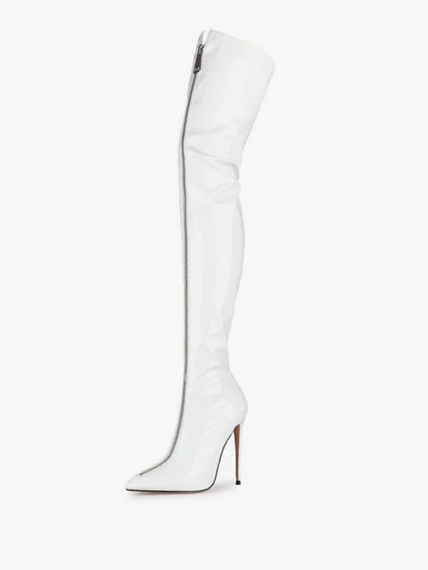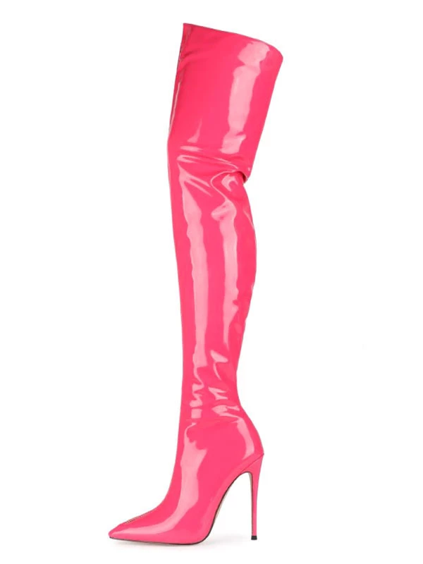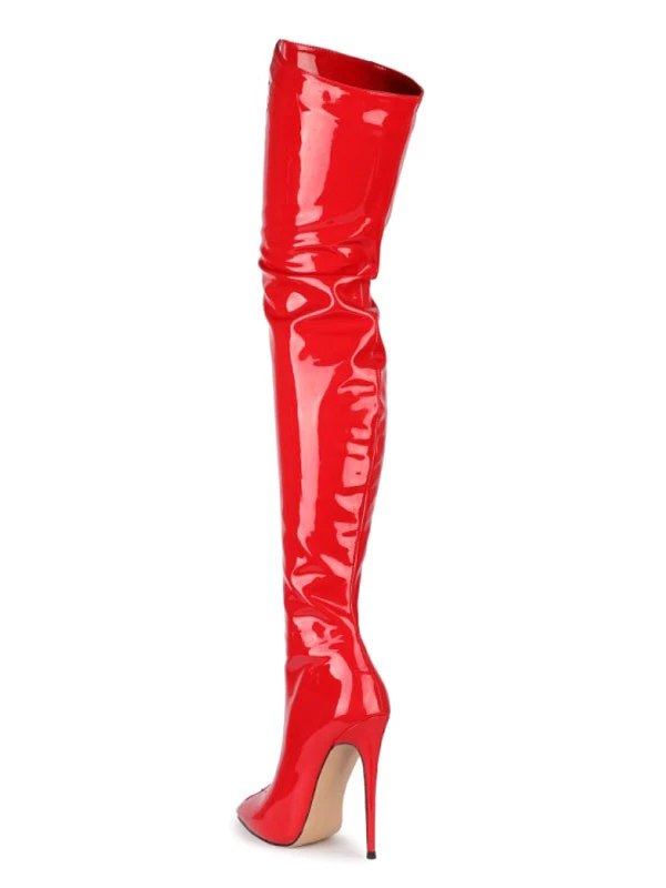 Over The Knee Boots Red Pointed Toe Zip Up Bright Leather High Heel Thigh High Boots