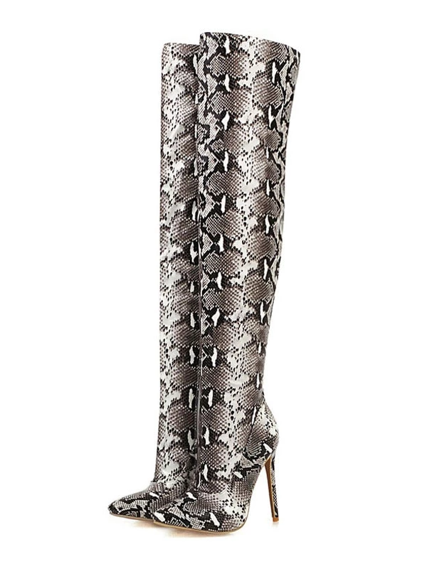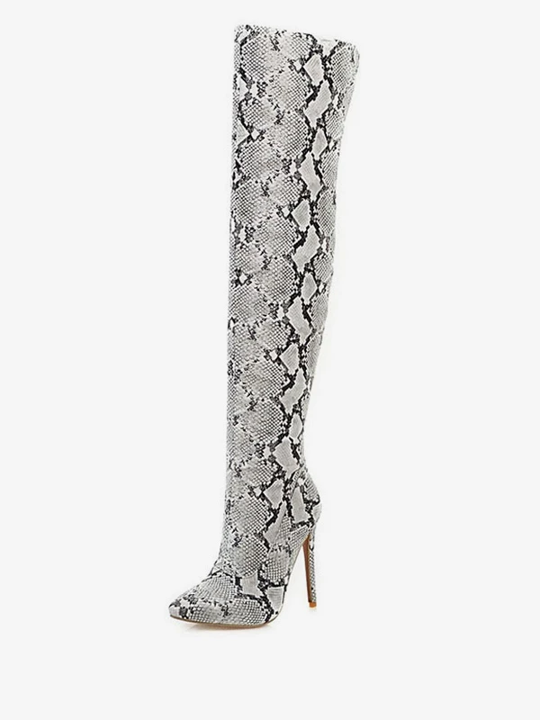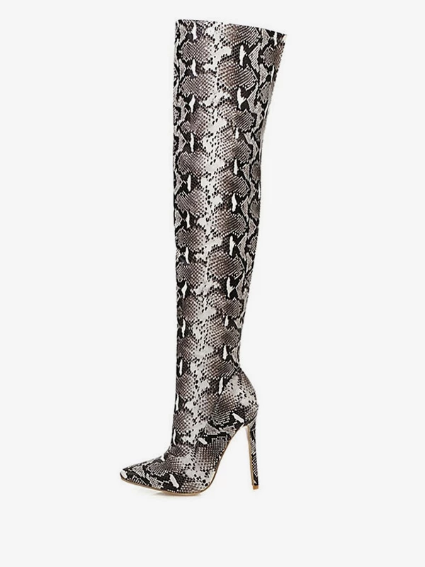 Over The Knee Boots Womens Snake Print Pointed Toe Stiletto Heel Thigh High Boots
