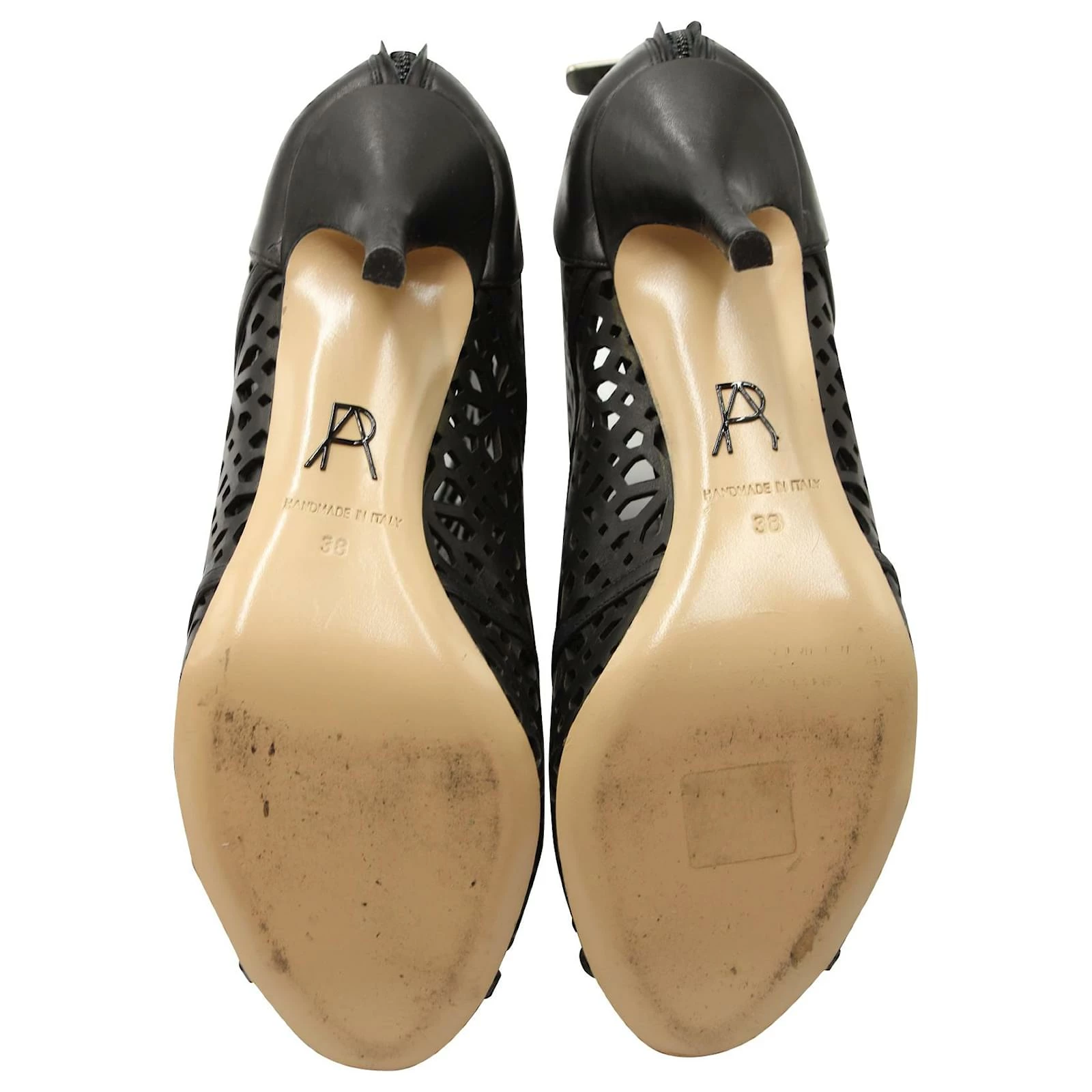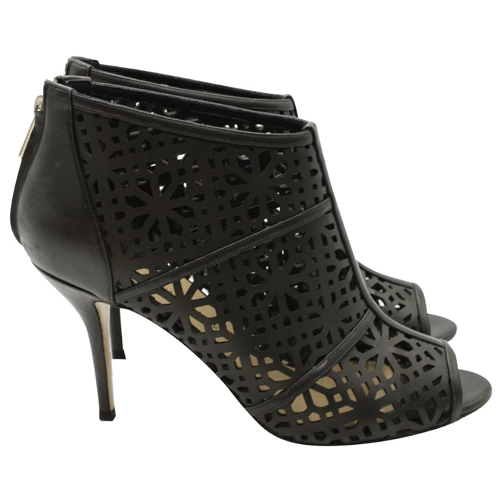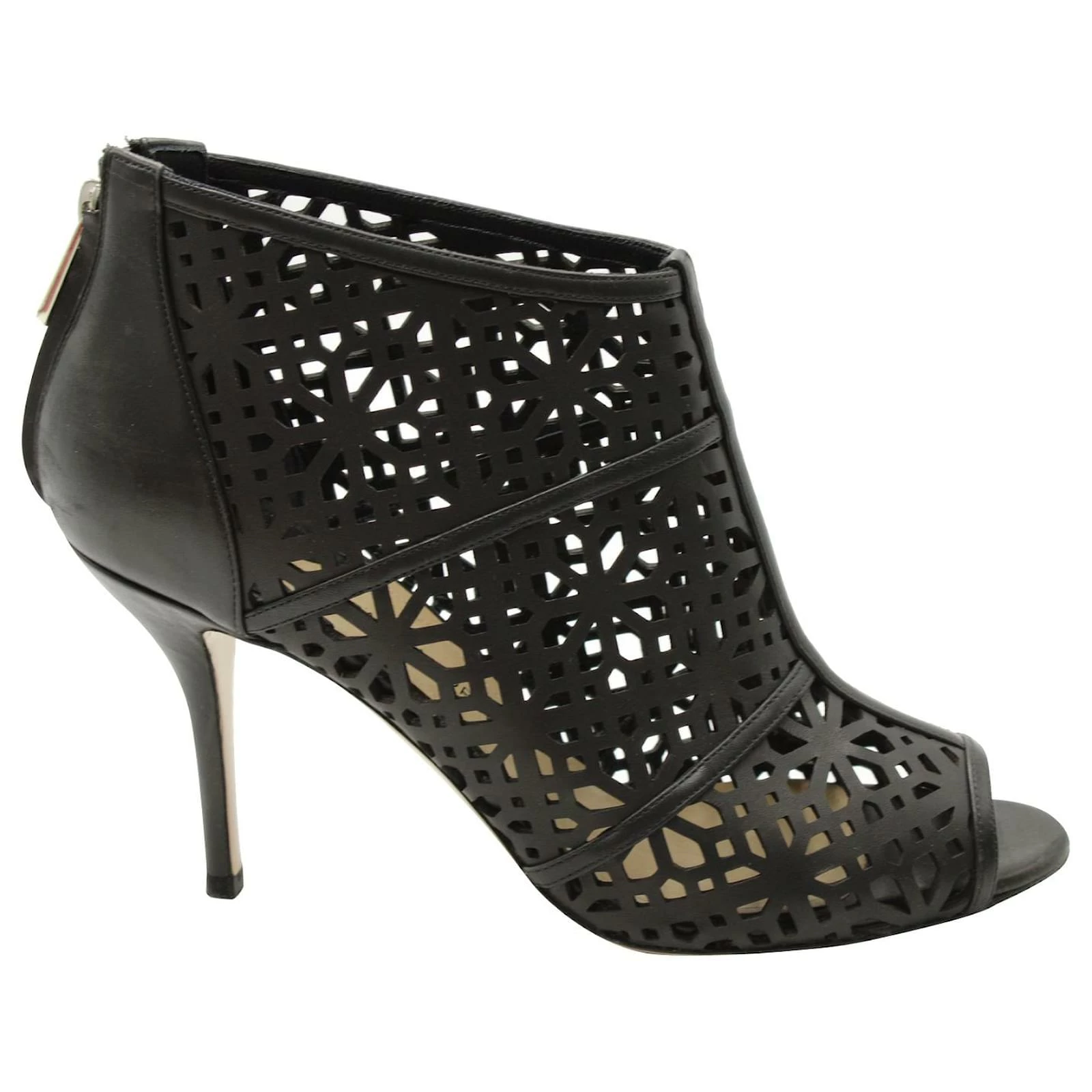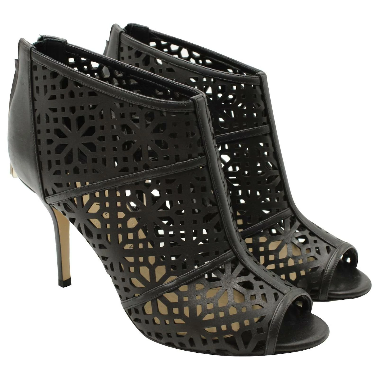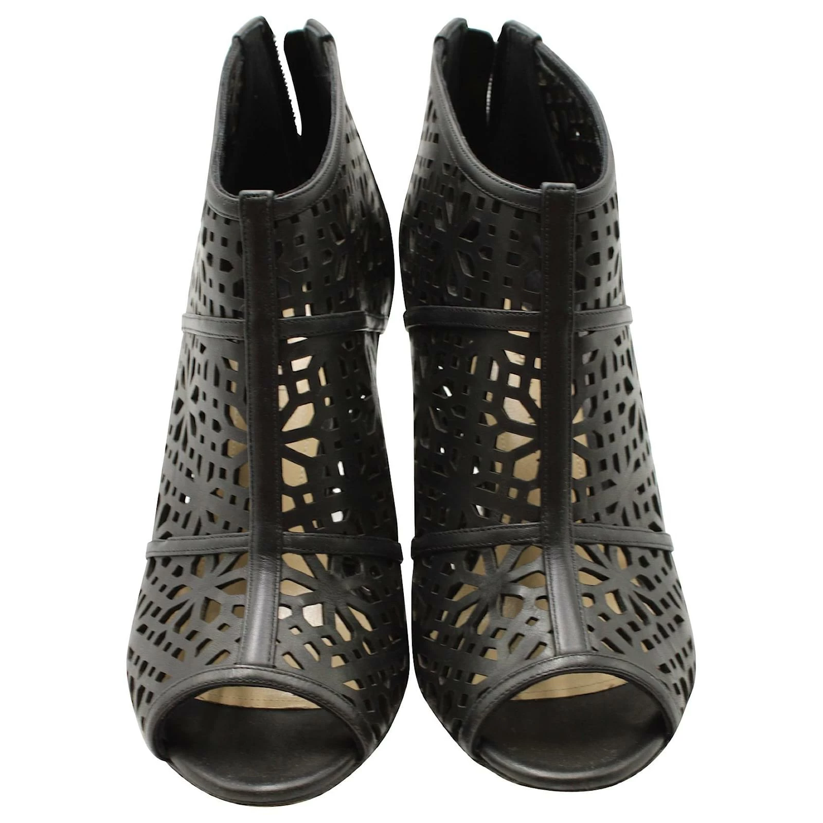 Paul Andrew Gaomi Cut-Out Peep-toe Ankle Boots in Black Leather