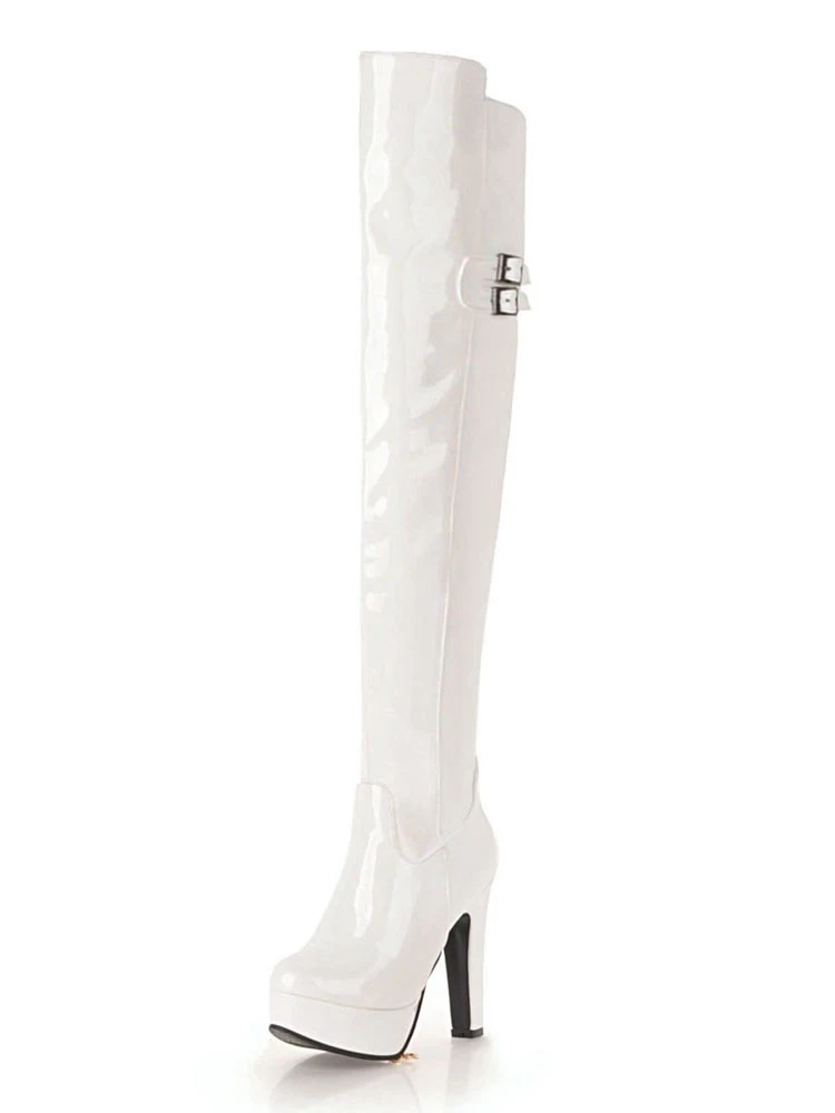 Platform Thigh High Boots Womens Almond Toe Chunky Heel Over The Knee Boots