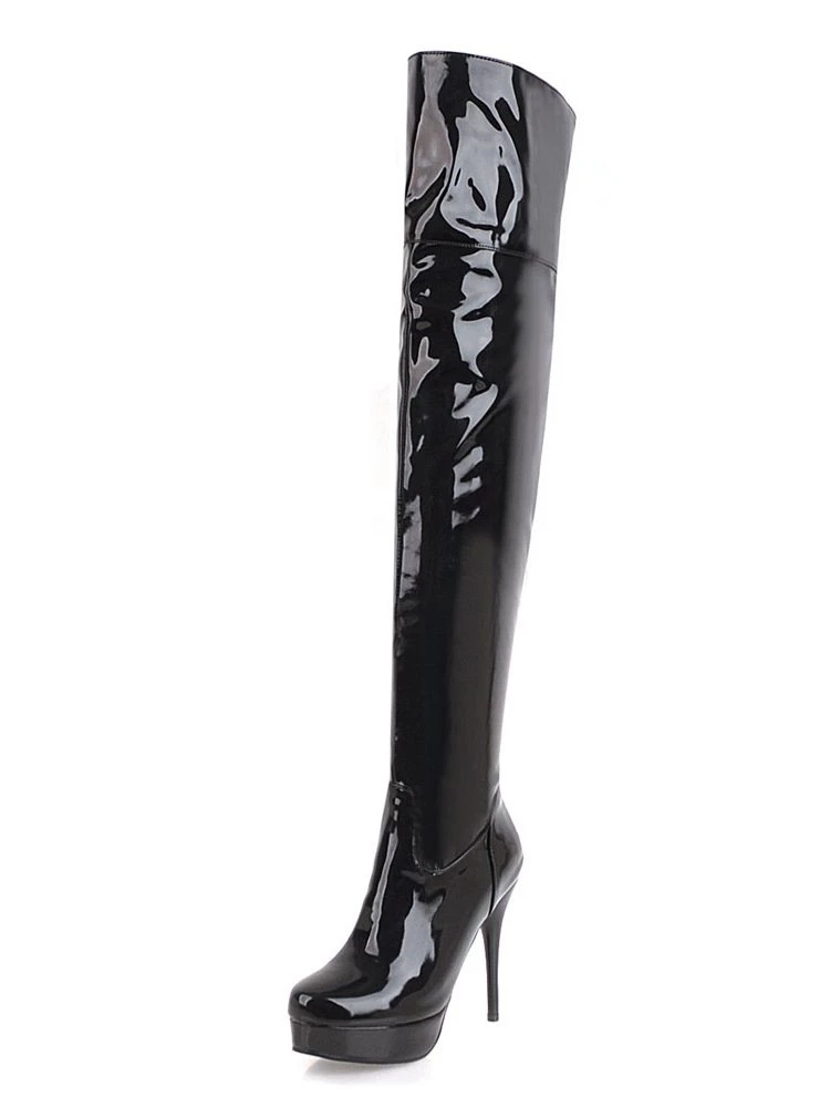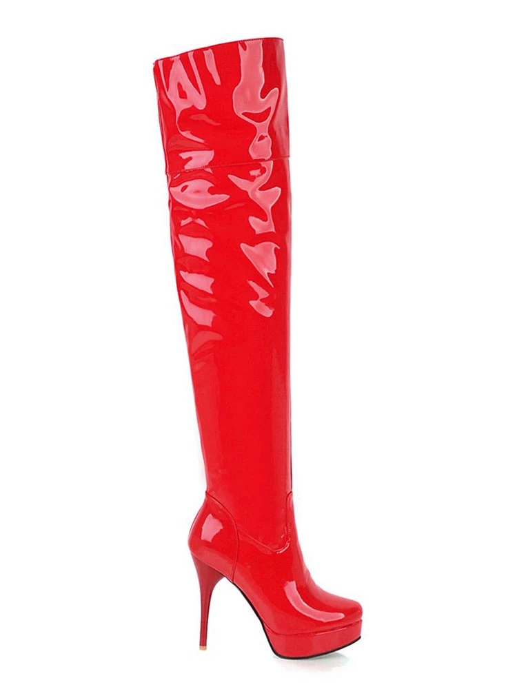 Platform Thigh High Boots Womens Almond Toe Stiletto Bright Leather Heel Over The Knee Boots