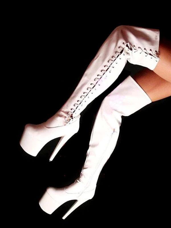 Pole Dance Shoes Sexy High Heel Boots Round Toe Lace Up Zipper Stiletto Heel Rave Club Red Thigh High Boots Stripper Boots Stripper Shoes