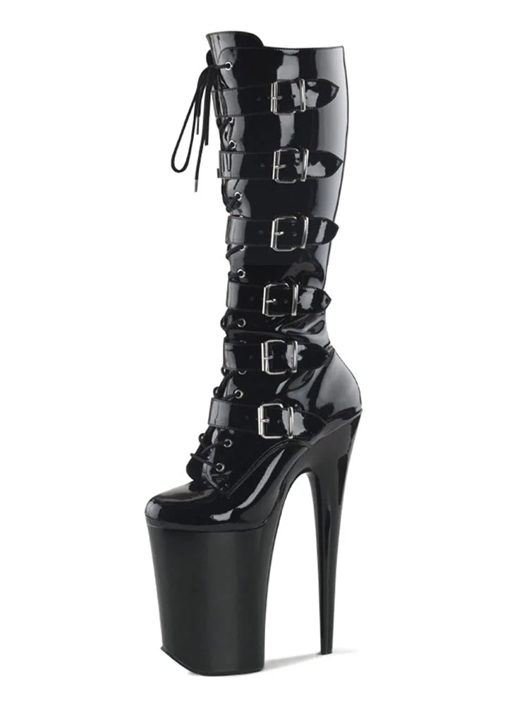 Pole Dance Shoes Sexy High Heel Boots Round Toe Zipper Stiletto Heel Rave Club Black Over The Knee Boots Stripper Shoes