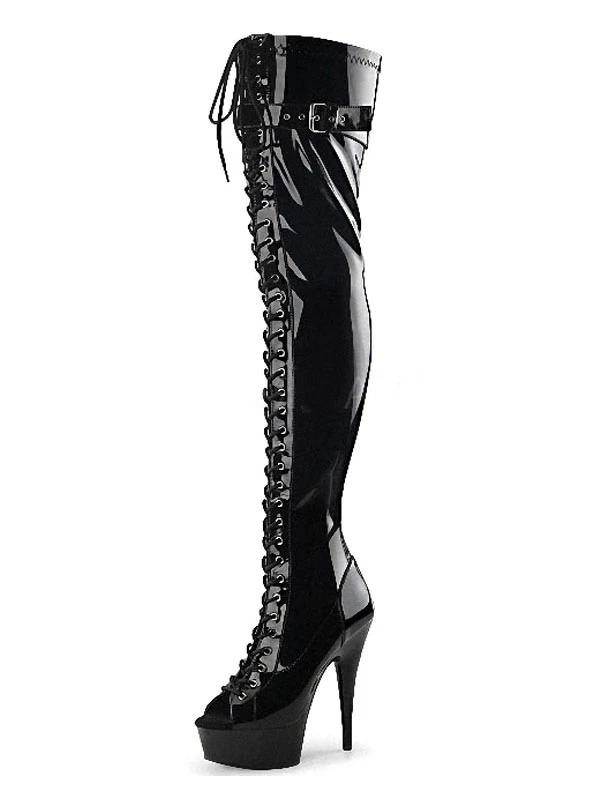Pole Dance Shoes Women’s Lace Up Platform Thigh High Heel Boots In Black