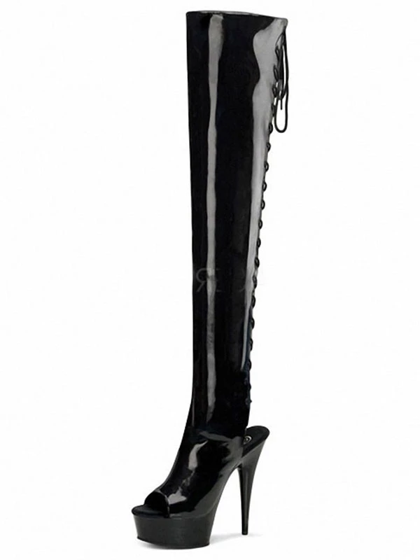 Pole Dance Shoes Women’s Sexy Slingback Exotic Heels Lace Up Tigh High Heel Boots