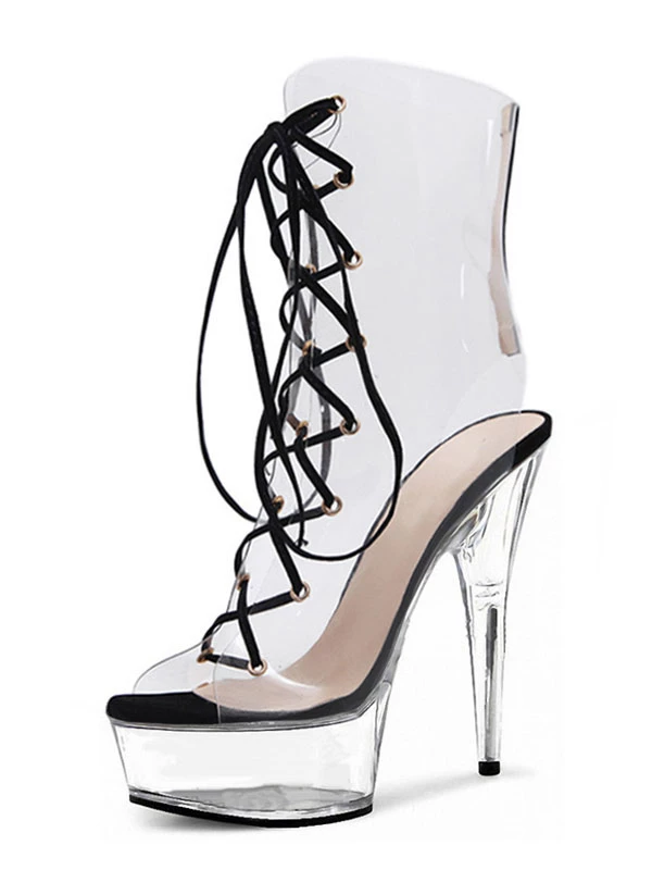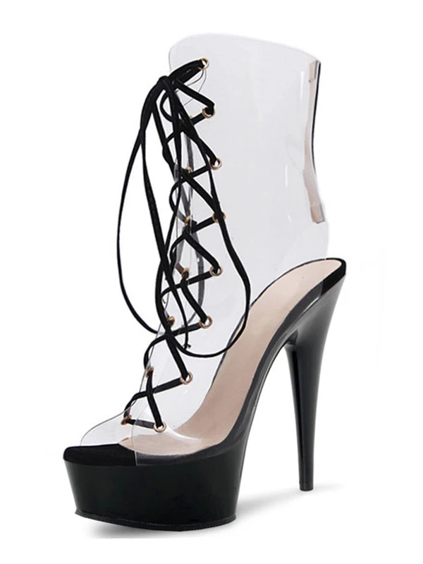 Pole Dance Shoes Women Sexy Boots Peep Toe Lace Up Buckle Artwork Stiletto Heel Ball Black Thigh High Boots