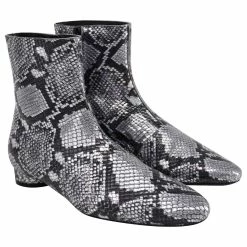 Balenciaga Oval Block-Heel Snakeskin-Embossed Ankle Boots In Silver Leather Silvery