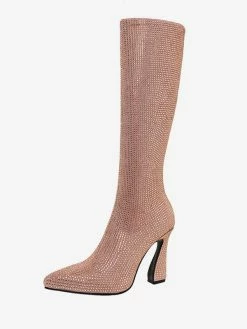 Silver Thigh High Boots Womens Patent Leather Pointed Toe Bright Leather Stiletto Heel Boots