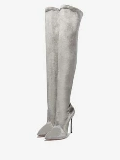 Over The Knee Boots Leather Black Pointed Toe Stiletto Heel Bright Leather Thigh High Boots