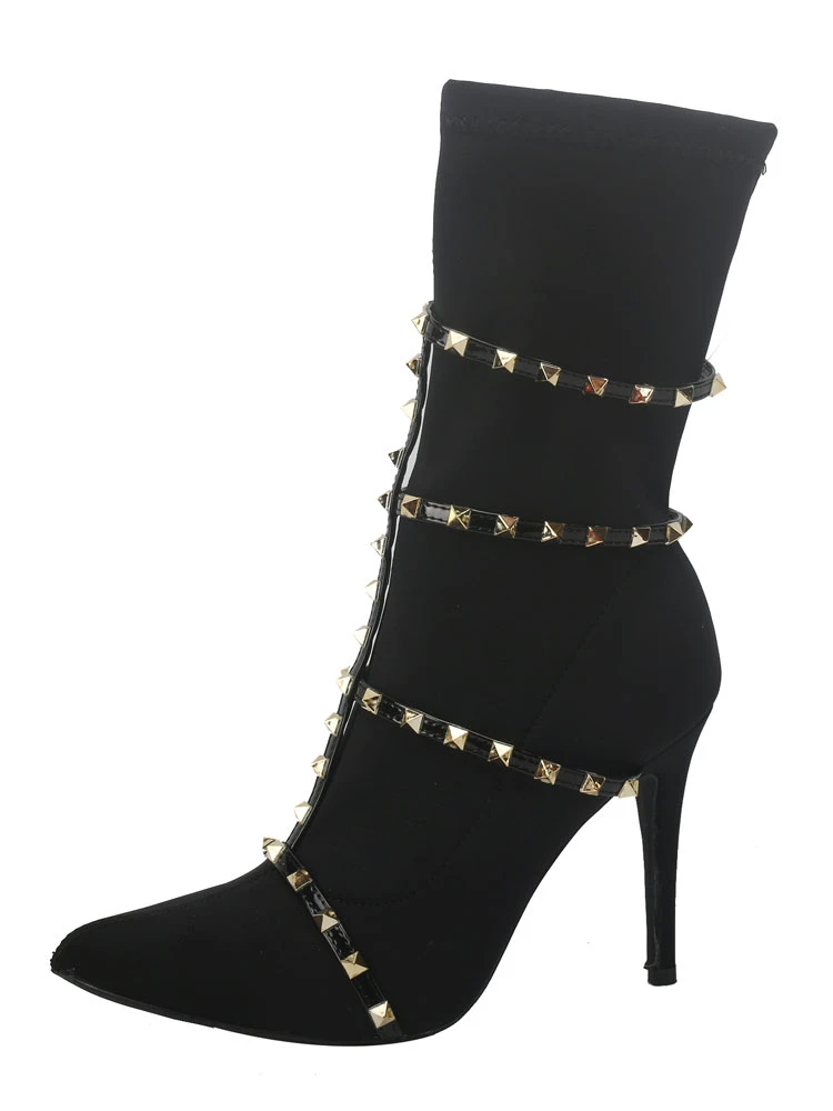 Be the first to review “Red Ankle Boots High Heel Booties Pointed Toe Rivets Strappy Stretch Boots” Cancel reply