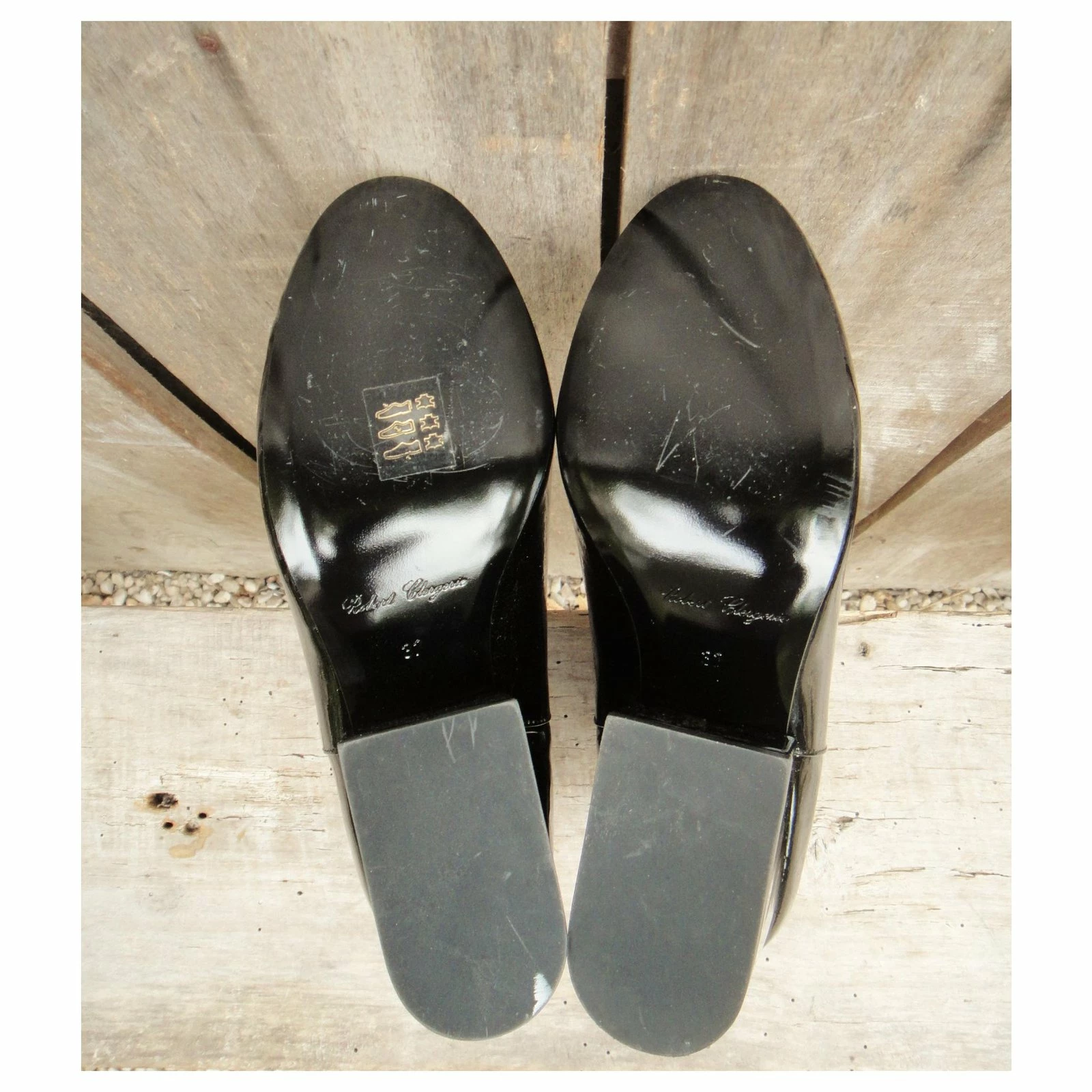 – Patent leather lined leather upper with elastic ankle yoke, first leather, leather sole, made in France