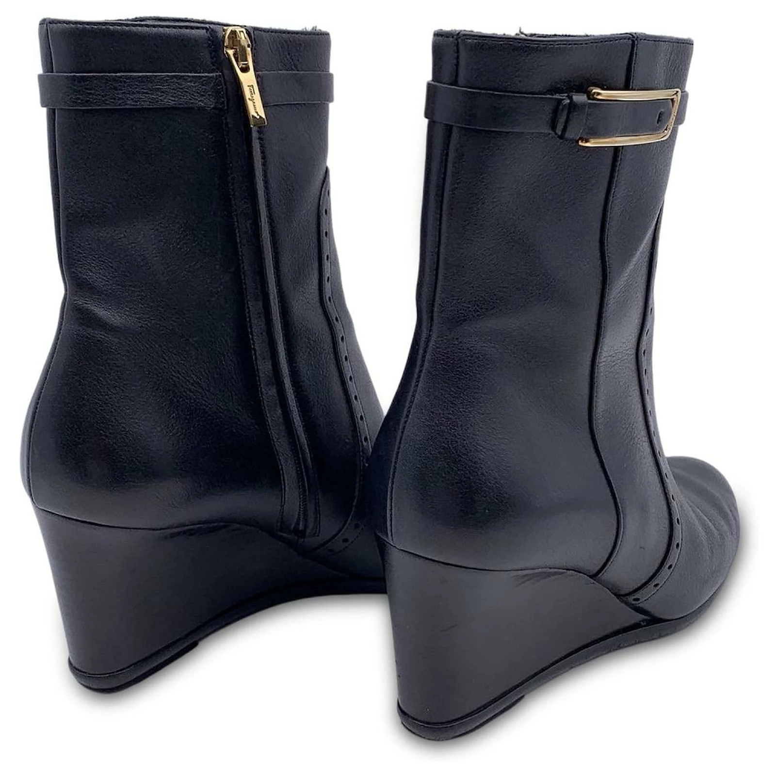 Salvatore Ferragamo Black Leather Wedges Ankle Boots Shoes Size 6.5 C
