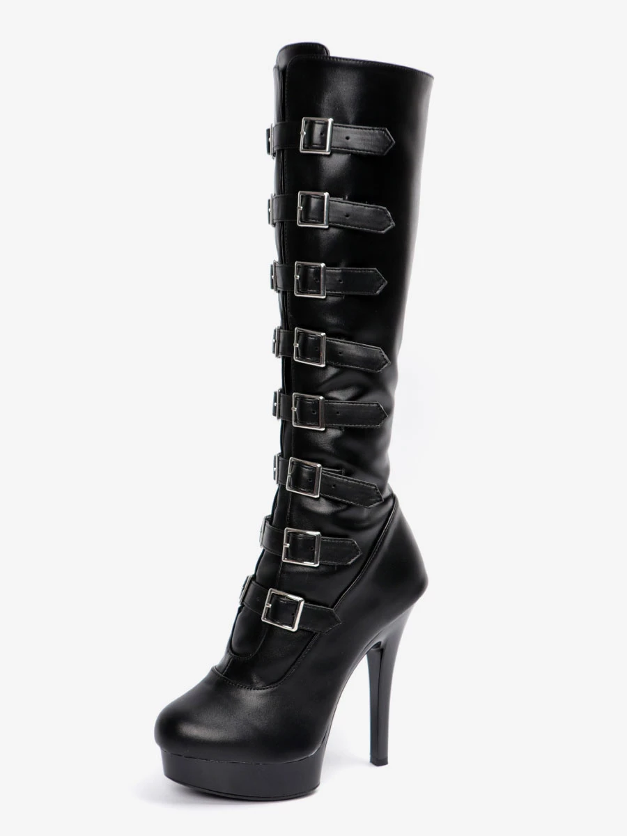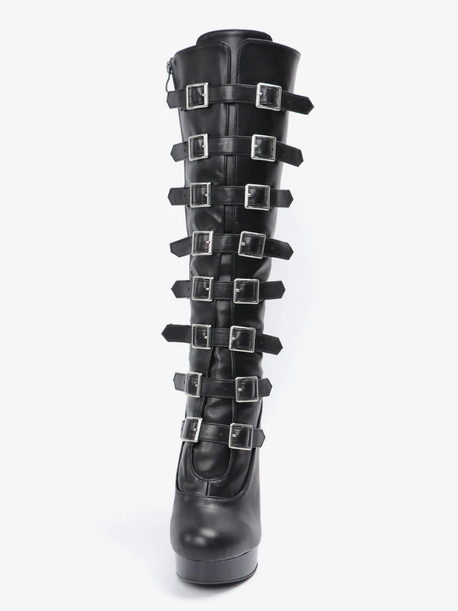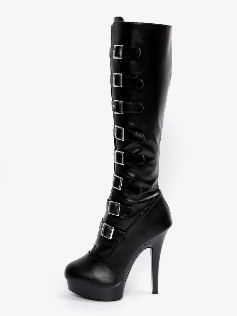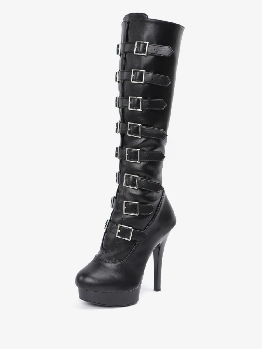 Sexy High Heel Boots Round Toe Lace Up Buckle Stiletto Heel Ball Black Thigh High Boots Over The Knee Boots