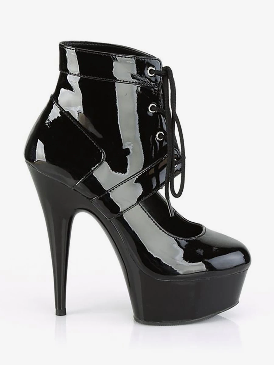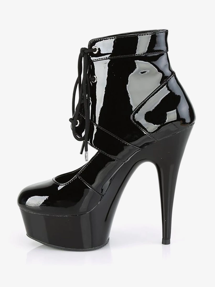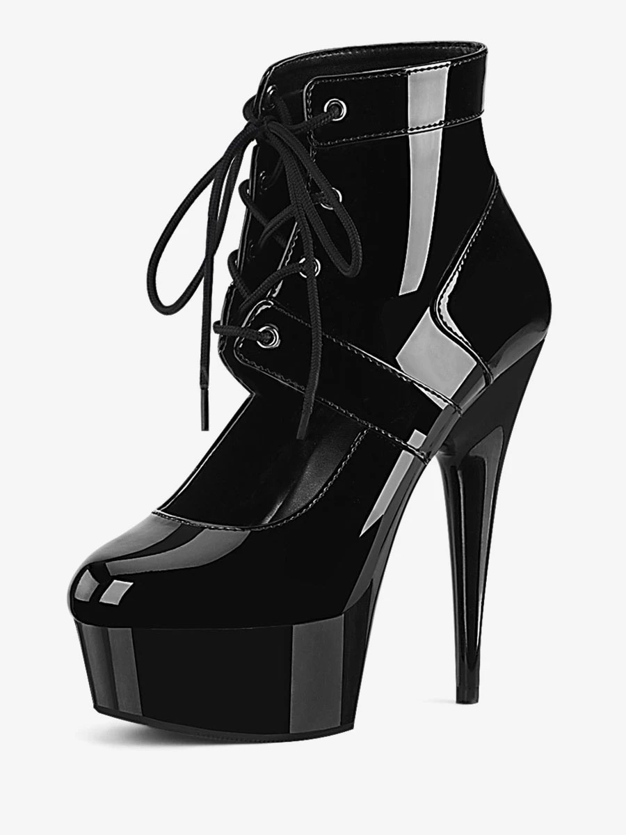 Sexy High Heel Boots Round Toe Lace Up Buckle Stripes Stiletto Heel Rave Club Pole Dance Shoes
