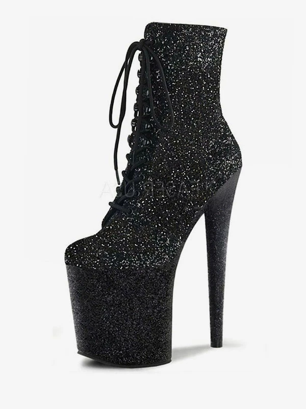 Sexy Pole Dance Shoes High Heel Platform Lace Up Pleaser Boots